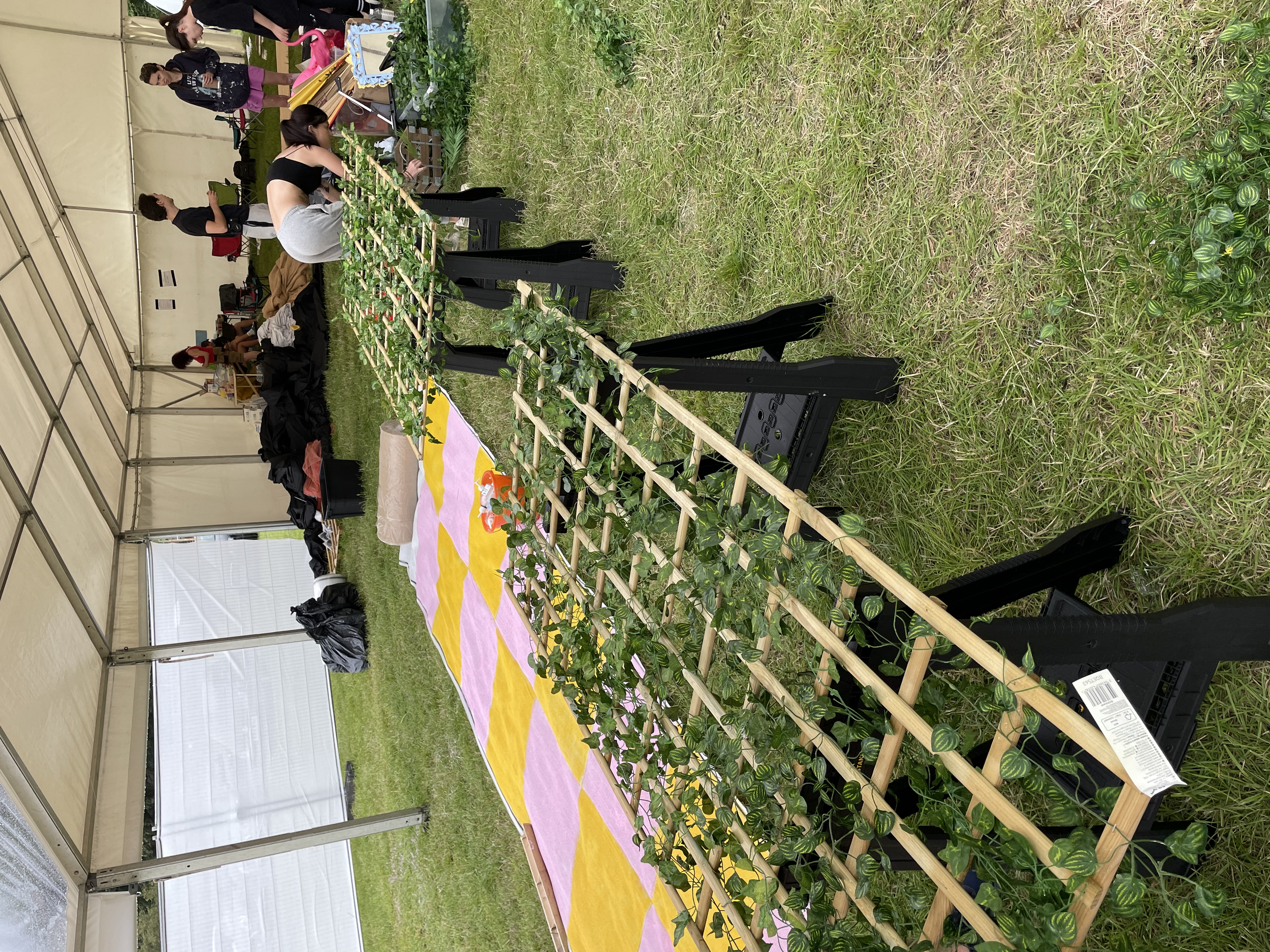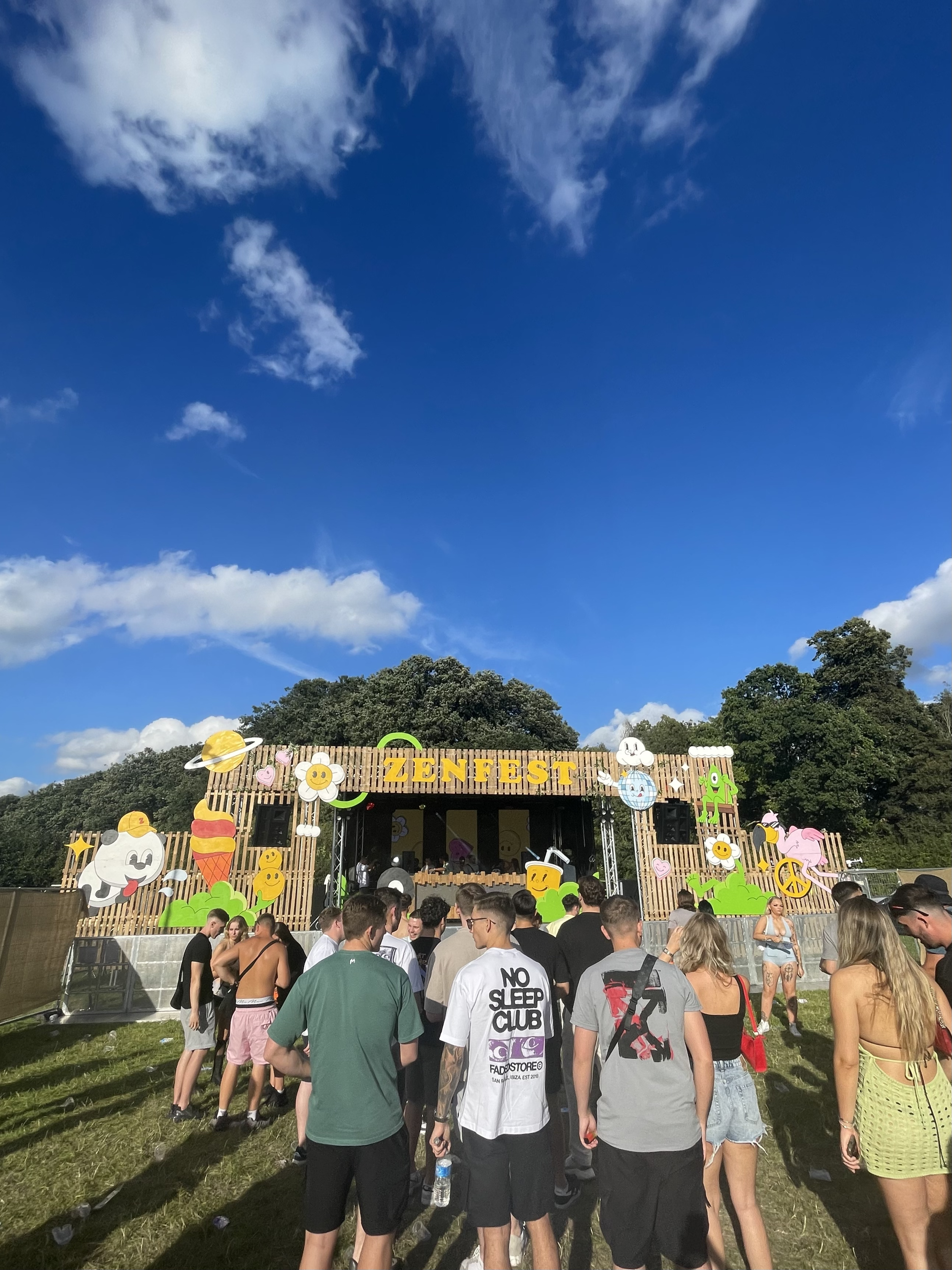 In August 2023 I was part of the Art Department at ZENFest, an upcoming festival based in Chelmsford, Essex. The festival’s branding used lots of bold, graphic imagery involving lots of large scale painting and control in black outlined details. I assisted in the construction of the entire festival (rather than just one large stage like at Boomtown Festival 2022), including bar decorations, stage netting, layout of gating and securing props to the stage. It was a great experience and has furthered my experience in the music events industry.